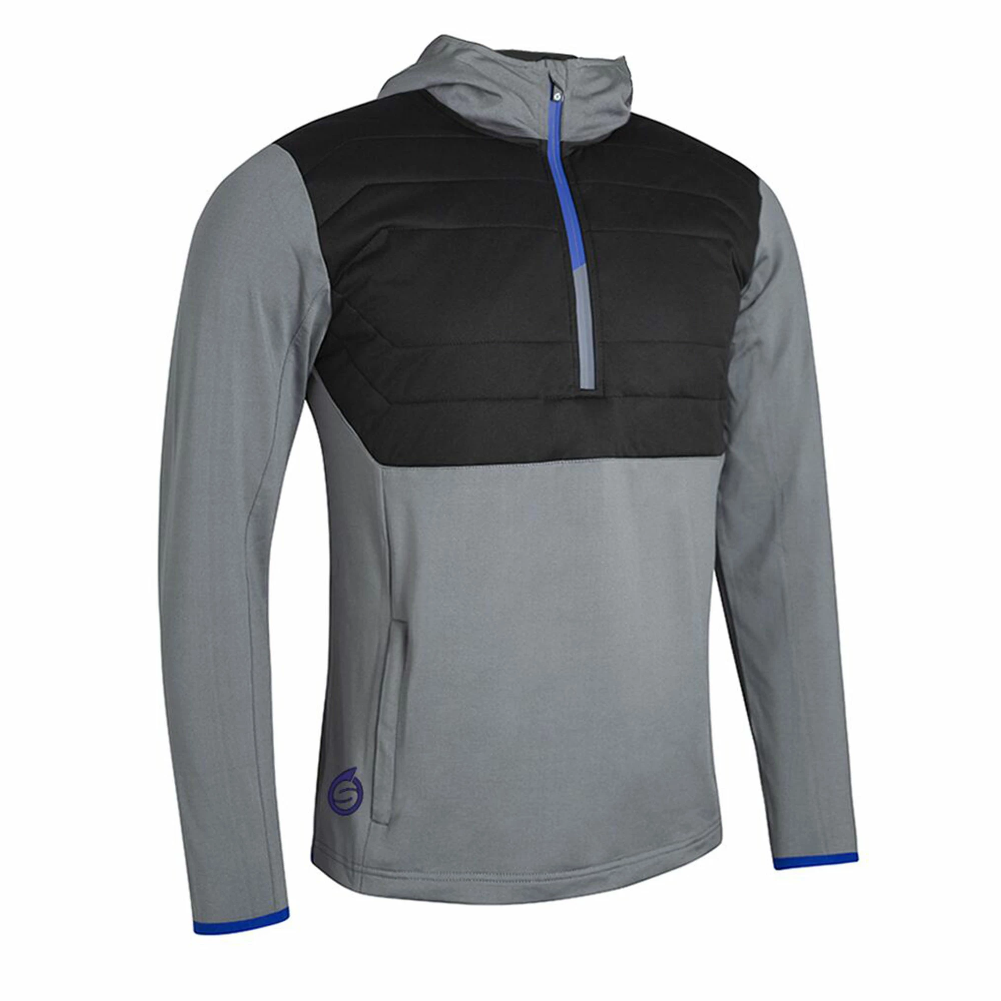 Sunderland Everest Showerproof Golf Hoodie The Everest Showerproof Golf Hoodie has been designed by Sunderland Golf to provide golfers with a mens golf hoodie that offers amazing warmth and comfort in colder weather conditions while also offering a brilliant range of movement and waterproof protection.& To make sure that golfers are as warm as possible while wearing this mens golf hoodie, Sunderland has used a lightweight construction that allows for padded body zones and a thermal fleece back to allow for heat to be recirculated. This means that the body heat that is created while walking a golf course will be retained for longer periods of comfort and warmth.& Sunderland has made sure that when you are wearing this warm golf jacket that brilliant fold swings can still be created thanks to the use of Polyester and elastane that have been used in a 4-way stretch construction. This means that golfers can experience a greater range of motion on their golf swing for much more fluid shots to be created.& To keep golfers protected while playing in light rain and wet conditions a hood has been included in the design while the entire Sunderland jacket has been coated in a water repellent finish to avoid rainwater being absorbed and becoming wet. Features 90% performance polyester 10% elastane 4-way stretch technical fabric with fleece backing; 100% polyester padded zones Teflon coated water repellent finish Low profile ‘S’ branded zips with chin guard Hooded collar. Stretch binding around hem and cuffs Embroidered ‘S’ logo above right hem &