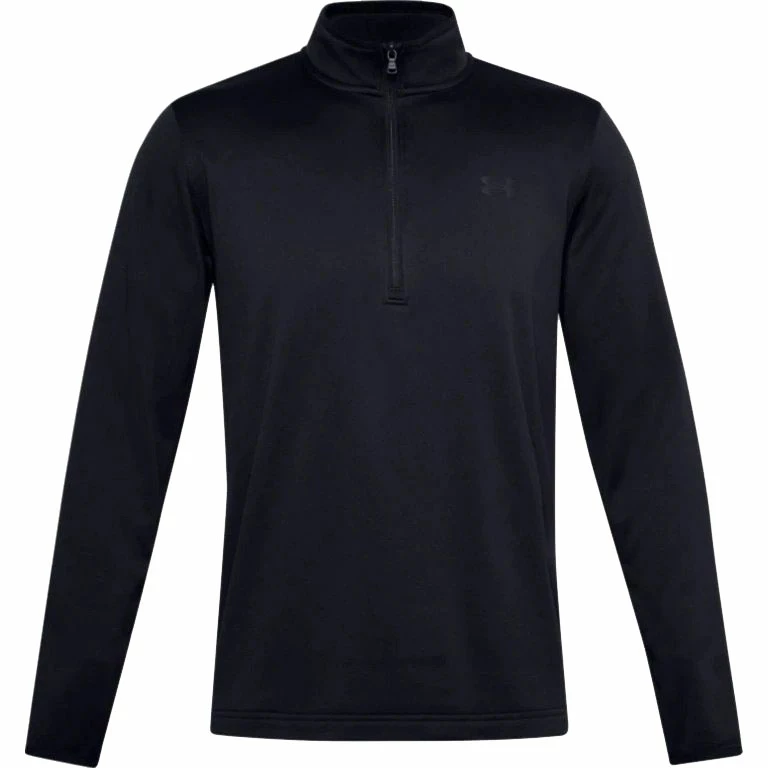 Under Armour Armour Fleece Half Zip Golf Sweater – Black The Armour Fleece Half-Zip golf sweater has been created by Under Armour so that golfers are able to experience a warm and breathable mid-layer that is perfect for cooler days on the golfer course.& Created using a lightweight polyester design golfers will be able to experience a great range of movement when wearing this Under Armour golf top so that smoother and more fluid golf swings can be created for enhanced performances while remaining warm and comfortable. Under Armour has included elastic binding on the cuffs and a dropped and shaped hem of this golf jumper to allow for more enhanced coverage of this golf jumper for a much better fit and complete comfort for any golfer who wears it. This lightweight and incredibly comfortable golf jumper is perfect for golfers who want to be able to play golf early in the morning because of the incredible warmth it provides thanks to the Armour Fleecing that has been used in the design. The soft inner layer that has been used in the construction of this Under Armour golf jacket provides a comfortable fit while the breathable materials and half zip design ensure that you will never feel uncomfortably warm while playing a round of golf. Features Loose and Fuller Cut Armour Fleece Lightweight Breathable soft inner layer Half Zip Elastic binding on cuffs Dropped, shaped hem for enhanced coverage 100% Polyester