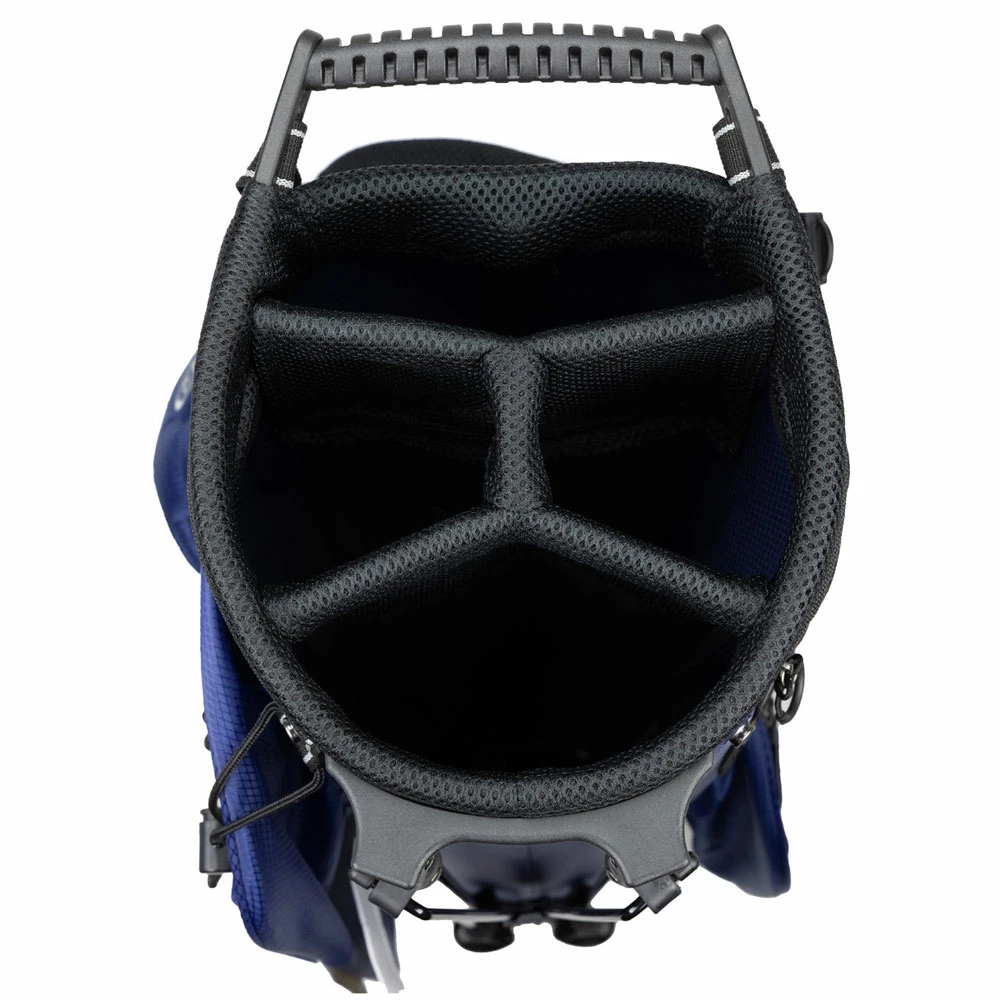 The TS5 Stand Bag features a 4-way divider top integrated with an ergonomic handle for easy lifting and offers 33% more space than our prior TS3 bags. This is a high-performance and lightweight bag with quick leg action. The bag is designed to handle a full set of clubs and can be used as a carry bag or used on a cart.